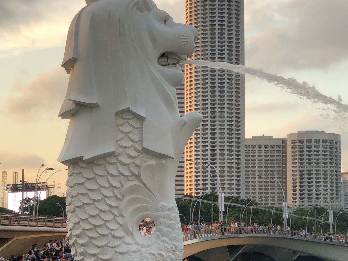そしてマーライオン:シンガポールの象徴が自分自身の周りにずらりと。