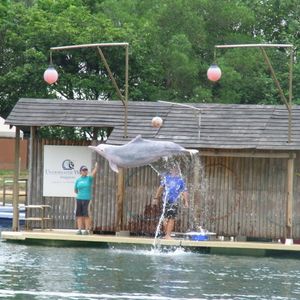 ピンクイルカは個体によって色が違うようで、写真みたいなピンク色!なイルカとそうでないイルカがいました。どのイルカもジャンプしたり手を振ったりかわいかったです。