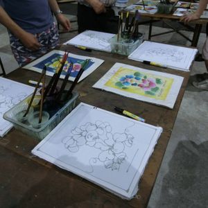 マレー文化村に到着し、まずはマレーシアの伝統的な家を拝見しました。その後、バティック染め体験、踊りの鑑賞などいくつかのアクティビティが待ち受けています。バティック染めは、見本もありますが、自分の好きなように色付けをすることができます。色付け時と乾かした後では、色の出方が異なるため、どんな完成品になるかは出来上がってからのお楽しみです。アクティビティの中には、希望者を募って一緒に体験できるものもあります。人前に出ることを恥ずかしがらず、積極的に手を挙げてみてください。