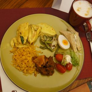 お昼のヒルトンのランチバイキングも、全然期待してなかったのですが、きれいだし、品数はものすごく豊富、マレー料理だけでなく、インド、インドネシア、タイ、シンガポール、中国などの代表的なお料理を食べられます。お腹いっぱい!