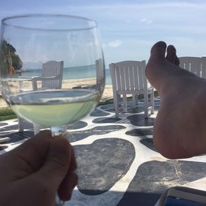 行ったのは日曜日でしたが、人が少なくビーチに4-5人。写真の白ワインはニルワナリゾートホテルのレストランで買った一番安いやつで約4,500円。wifiも使わせてくれるからブログしながら夕方までのんびりして、良いお休みでした。
