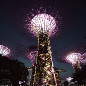 マリーナ・ベイに造られた近未来がテーマの大型植物園「ガーデンズ・バイ・ザ・ベイ- Gardens by the Bay」。巨大な木に見立てたスーパーツリーグローブ、35mもの人工滝が圧巻のクラウド・フォレスト、世界各地の植物を楽しめるフラワー・ドームと、見どころもたくさんあります。スーパーツリーグローブは夜にはライトアップされ、音響や光を駆使したショーも開催。建設当初は表面に露出している鉄骨部分が、樹木の成長によって将来的に隠れていく設計がされており、訪れるタイミングや昼夜で姿を変える魅力的な観光地のひとつです。