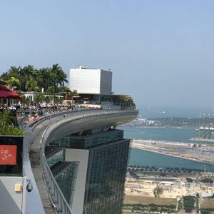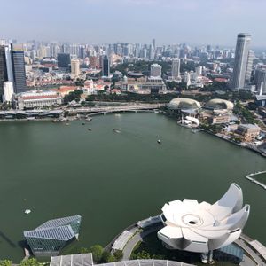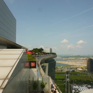 当日は天気も良く、スカイデッキからの眺望は最高でした。 が、マーライオンが改修工事中で見られなかったのが残念でした。(6月中旬まで工事中)