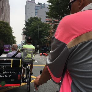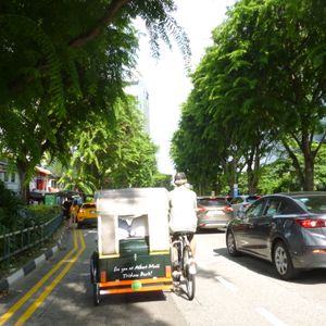 午後からは富の噴水(パワースポット)、ラッフルズショップ、ブギス散策等してから、トライショー(人力車)で市内の車道を約30分間乗車。車が横も後ろからも普通に走っていてちょっとアトラクション気分。