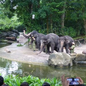 ここで女性3名のグループと合流し、ガイドさんも変わりいよいよ動物園に。到着する頃には雨も上がり、アジアゾウやアシカのショーの見学、トラムに乗っての園内一周、オランウータンとの記念撮影など、大いに楽しみました。雨上がりということもあったのか蚊が多く、何ヶ所か刺されました。虫除け&虫刺され薬は必携です。