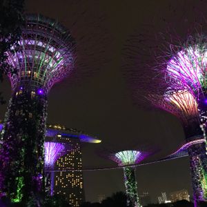 食べている間に小雨になり、いざクラークキーから乗船!。夜景が本当に夢のようでした。マリーナベイサンズホテル真正面から20時12分ライトアップされた様子もよく見えるので最高です。プロジェクションマッピングされるマーライオンも美しいです。すぐさま反対側のスーパーツリーへバスで移動し、そちらのライトアップショー21時頃もしっかり見られます。余韻に浸りながらホテルにもバスで連れて行ってくださるので安心でした。また違う時期に行ってみたいと思います。