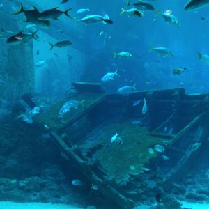 水族館には世界一大きい水槽があり、見ごたえがありました。水槽のトンネル、足元にガラスでその下を悠々と泳いでいる魚を見たり、ゆっくり鑑賞できました。特にこの場所は、添乗員さんはおられませんが、自由に巡れて堪能できました。