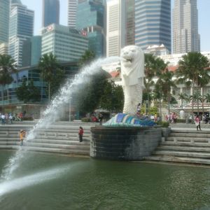 マーライオン。ここでけっこう自由時間があったけど、そんなに時間いらないです。昼食までの時間調整なんでしょうかね。時間があまるため、ひとりで白のラッフルズ像まで散策してきました。黒のラッフルズ像のところは現在工事中で見れず。