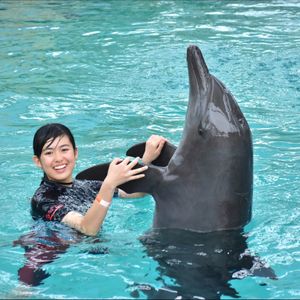 イルカに後ろから押してもらったり、手を繋いだり、とても貴重な体験でした。お勧めです。