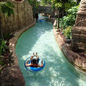 イルカに触れ合う時間の前後は、ウォーターパークのプールで1日遊べます。