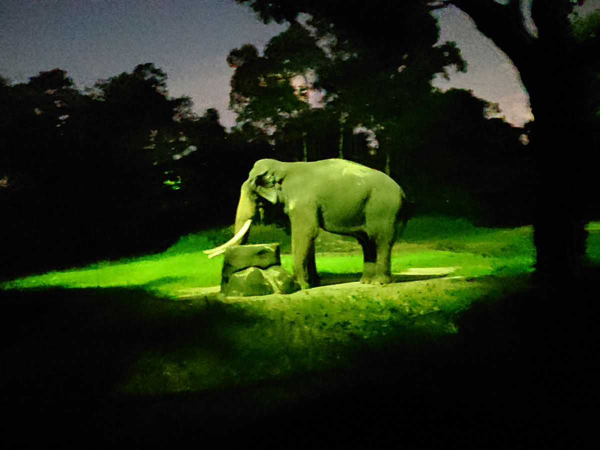 囲われた地区にいる象や、ライオンはいたが、遠くて暗くてよく見えないし、期待はずれでした。