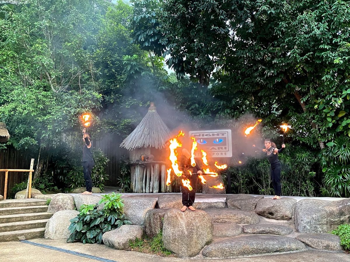 ●18:45~ ファイヤーダンスショー(園内のレストラン横で行われています。ツアーとは関係なく自分で場所取りして見学します。10分程度のショーでした。18:30頃現地に行きましたが、十分見える場所で見学できました。)