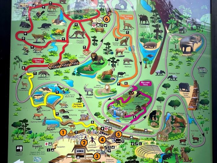 タイムスケジュールは以上です。私たちは、現地解散だったので、トレイルを徒歩で一周回りました。トレイルは子供(11歳)でも、途中休憩しながら1時間くらいで回れる距離でした。トレイルは、自分のペースで動物を見ながら回れ、場所によっては餌の時間と重なり、また、所々で飼育員が動物の説明をしているので、現地解散し、トレイルを楽しんだ方がおすすめです。