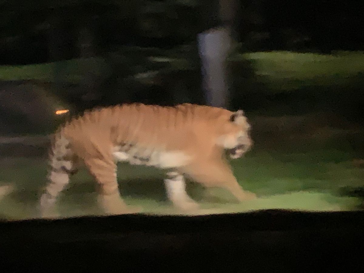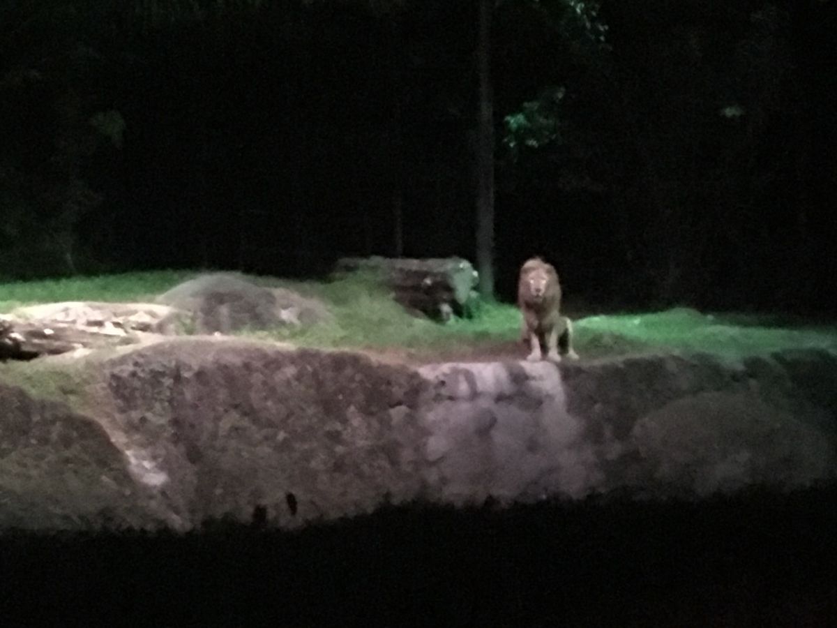 ナイトサファリでは、暗闇にうっすらと明かりが照らされていることや、放し飼いになっている場合が多いので、活動している動物が必ず見れるというわけではありませんが、できる限り野生に近い形で見ることができて、非常に興味深かったです。