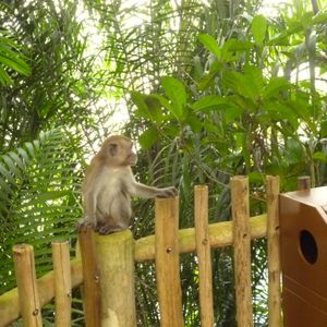そのあと、フィッシングキャットトレイルとレオパードトレイルを周りましたが、レオパードトレイルのマングローブウォークが面白かったです。暗くて入るのは怖いですが、木道によくわからない鳥、手すりに大きな鶏とカモ、その背後の木には大きなコウモリたちがぶら下がっていて、暗闇で近くで見ると怖いです。
