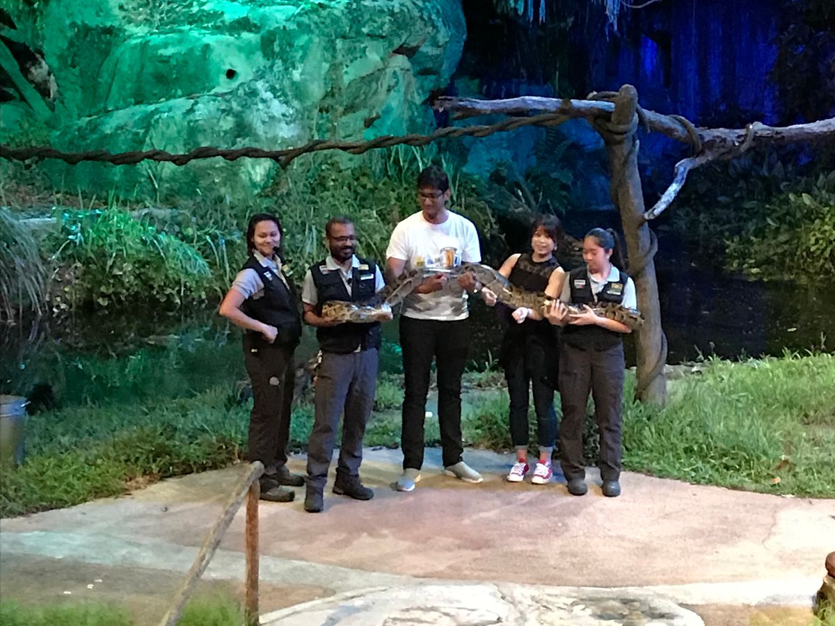 初めてのシンガポール旅で人気のナイトサファリに参加してみました。このツアーで申し込みすると日本語のトラムに優先搭乗することができ、アニマルショーも席が確保されているため、ストレスなく楽しむことができました。また、今回は早い時間のトラムに乗車できたおかげで、日が落ちる前に動物達の動きをよく見ることができました。ただ、あまり野生的な感じはなく、動物園化されていたのが残念です。野生の動物を見れるという事に期待せず行けば、十分に楽しめると思います。