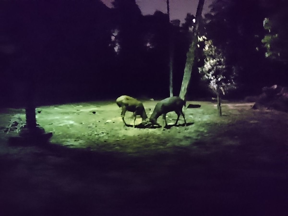 鹿はいくつかいましたが、きれいな色だと説明を受けましたが、暗いので形しか分かりません。