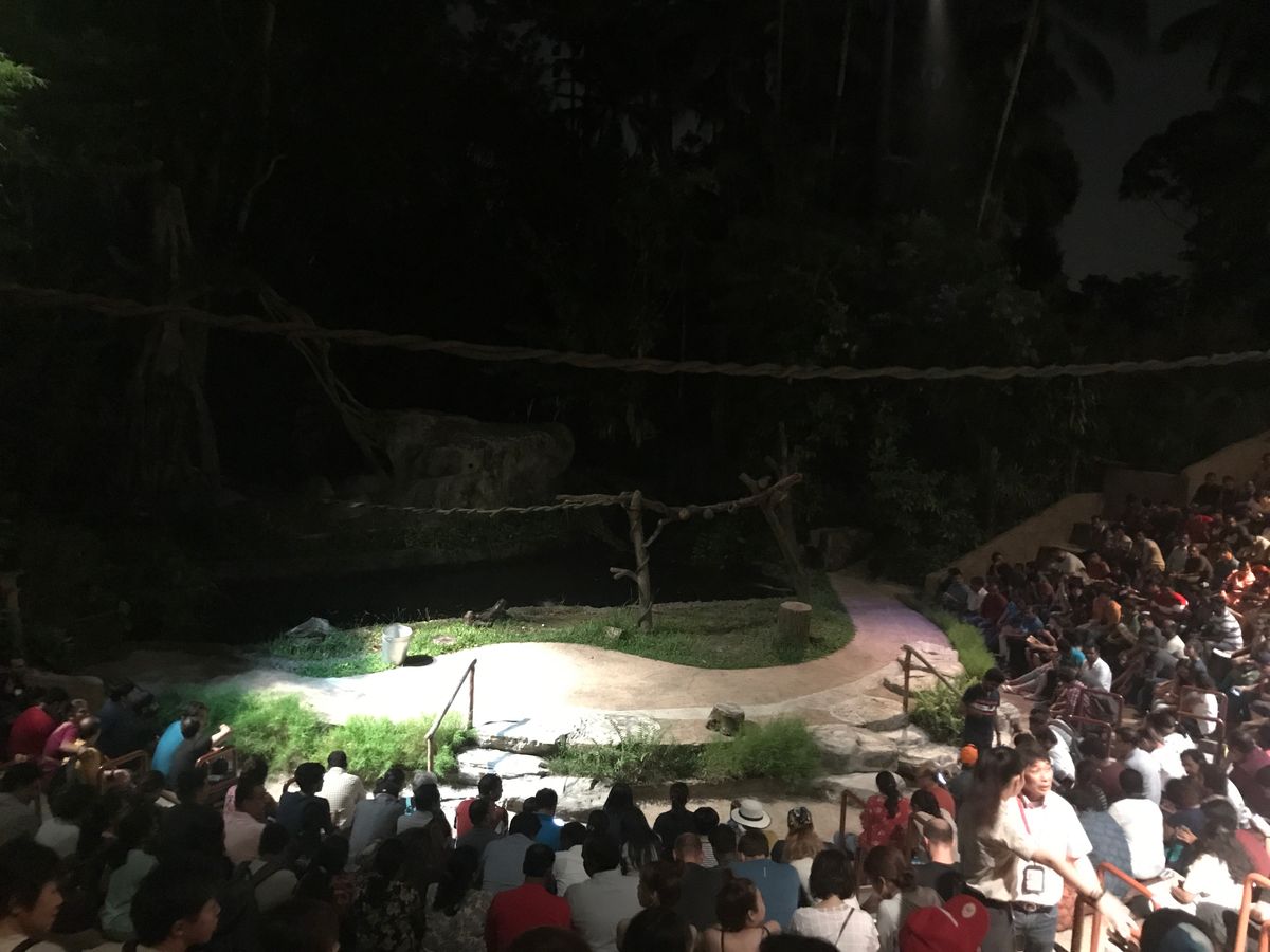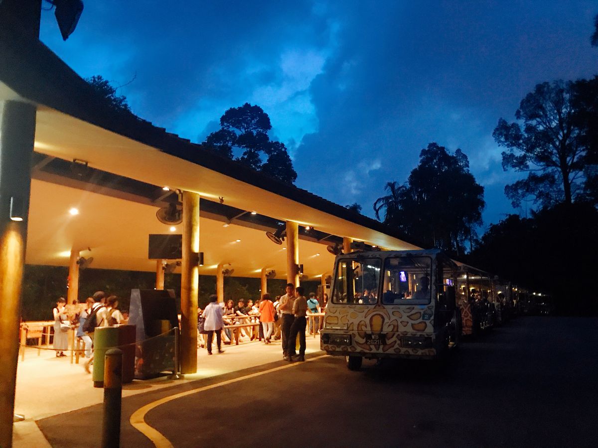 サファリ到着後は入場までお土産を見たり、軽く夕食を食べながら目の前でファイアーダンスを楽しめるので開場まであっという間です。そしてなんといってもトラムに並ばなくて済むので楽でしたが、暗くて動物があまり見えなかったのが残念でしたが全体的に夜の雰囲気が楽しめてよかったです。