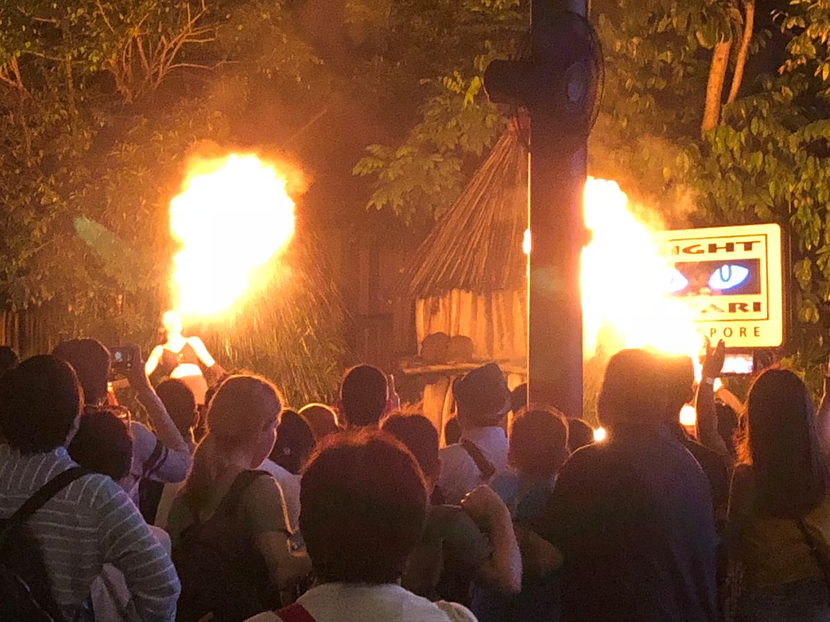 後半ナイトサファリには、すっかり雨も上がり食事、トラムとも予約がきちんとされていた為かファイアーショーを見学後、本当にスムーズに動けました。昼間の動物園では日本語音声のイヤホンも無かったのですが、夜はゆっくり説明が聞け、夜の動物たちも沢山見られました。