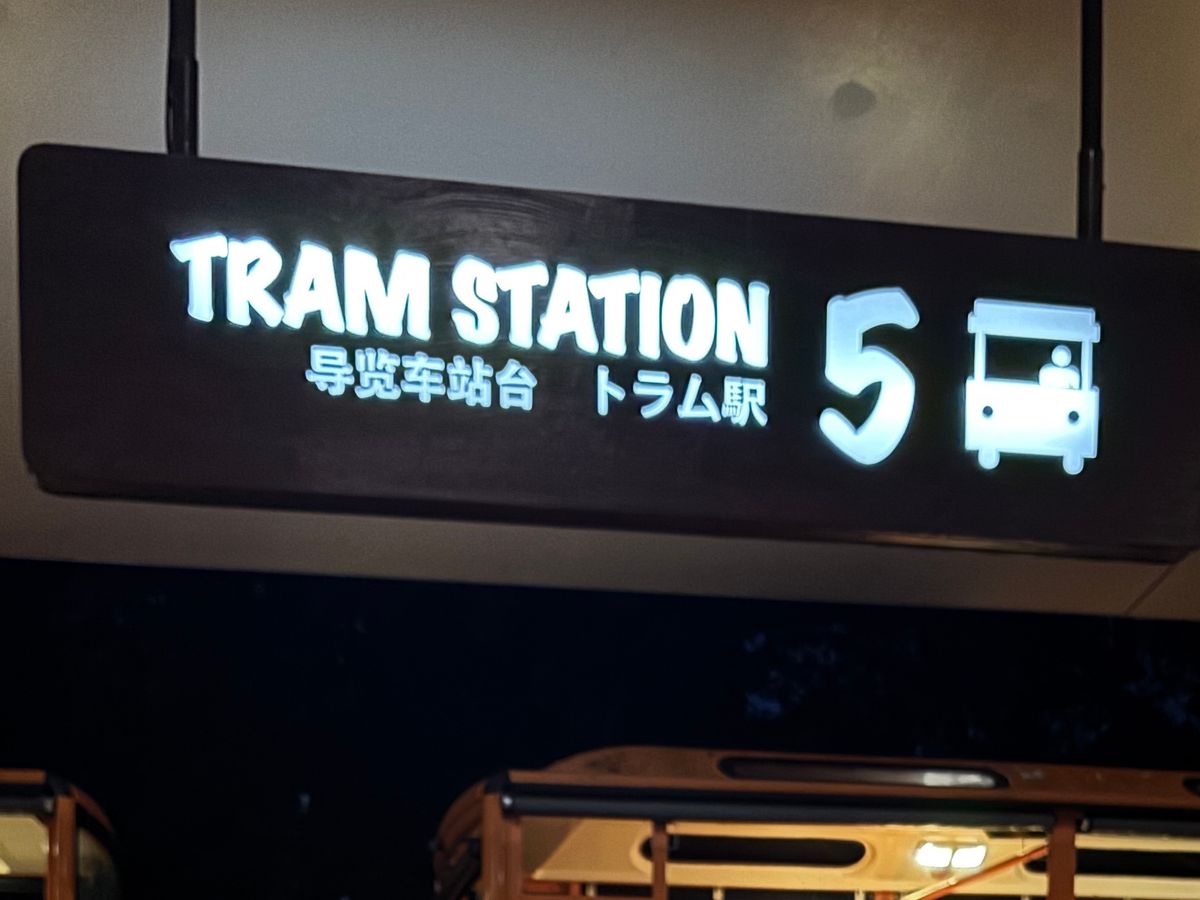 多言語(日本語)対応トラムは、英語のトラムの乗り場とは別で、少し奥まったところにありますのでご注意を!