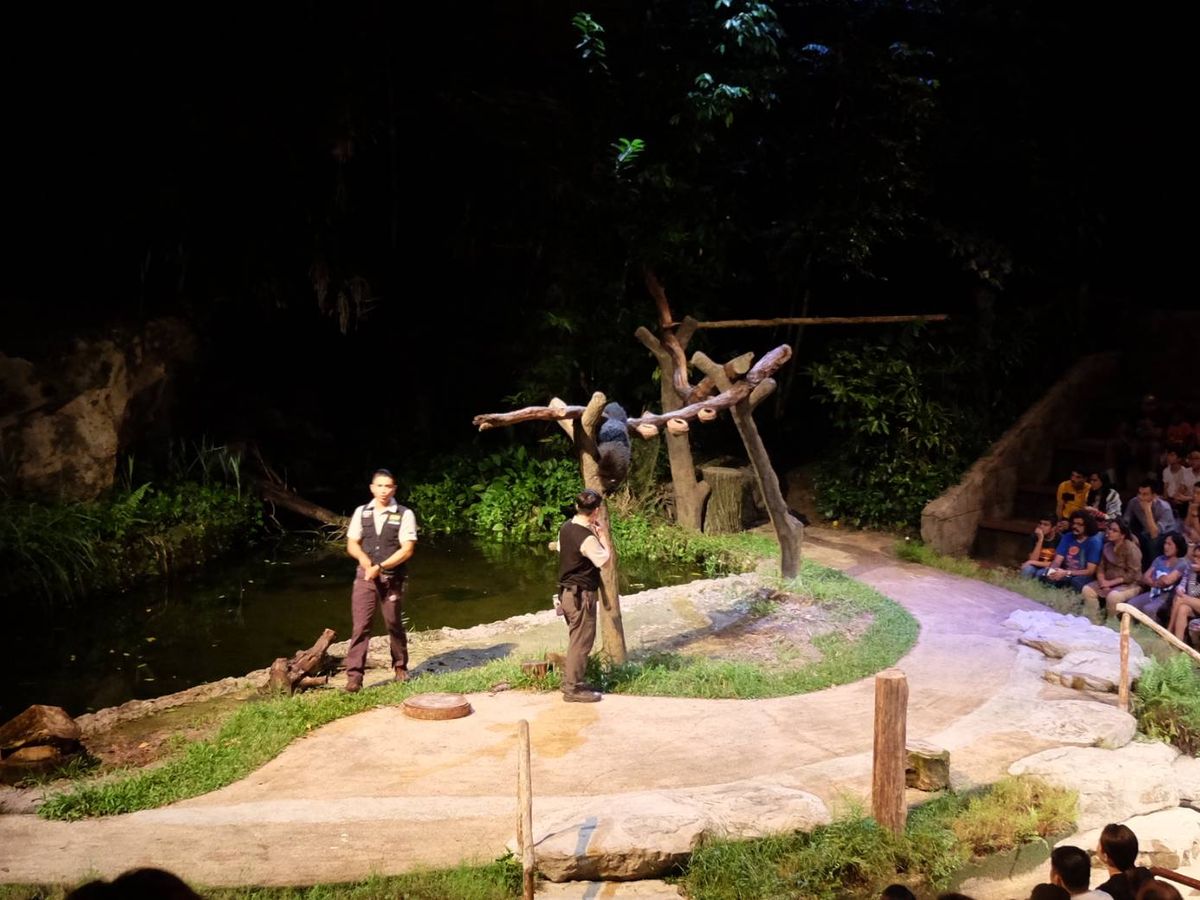ナイトサファリ自体は「夜行性動物の観察」ということで照明も暗く、展示スペースも広く植物が茂っているので、動物を見つけるのも難しく。ヘッドフォンで日本語案内を聞いていたため、外の音も聞こえず。