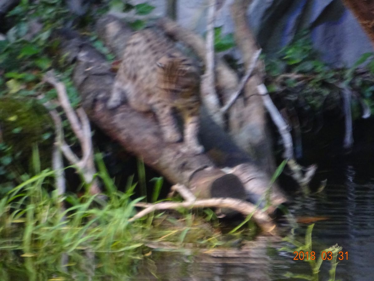 ショーでは、初めにフィッシングキャットがエサを食べるところを見せてくれました。フラッシュは使いませんでしたが(ショーの初めに、使わないように説明がありました。)、写真に撮れていました。
