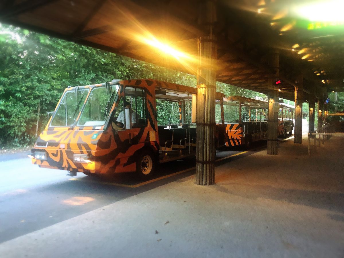 トラルを乗ってるときにバクが隣を歩いててびっくりしました。19時15分の早い便だったお陰か動物がご飯を食べてるのが良く見れました。