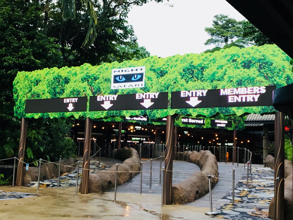 マリーナ地区からバスに乗り、19時頃にナイトサファリ到着。チケットを交換してすぐに入園&トロリー乗車へ。とてもスムーズでした!