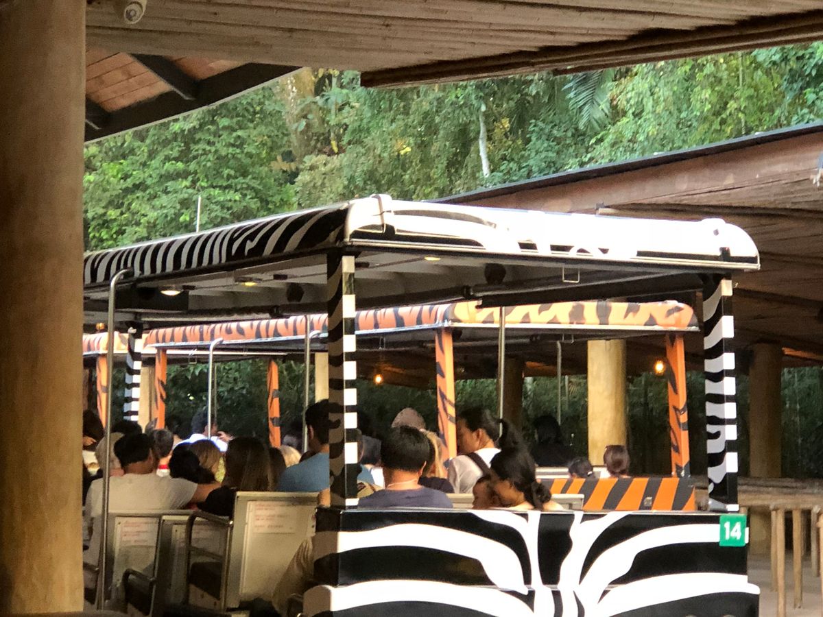 雨が降っていたため、トラムにビニールのようなものがおろされ、前半は全く見えませんでした。しかも蒸し暑かった。途中からビニールがあげられたけれど、目を凝らしてやっと動物を見つけるだけで、明るい時に見た方がよっぽど楽しいです。