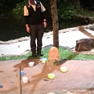 餌を与えている所を見せるのが殆どで、それをさも自然の中で夜行性の動物を運良く見られたような解説には辟易、文化レベルの高いシンガポールの動物園とは思えませんでした。