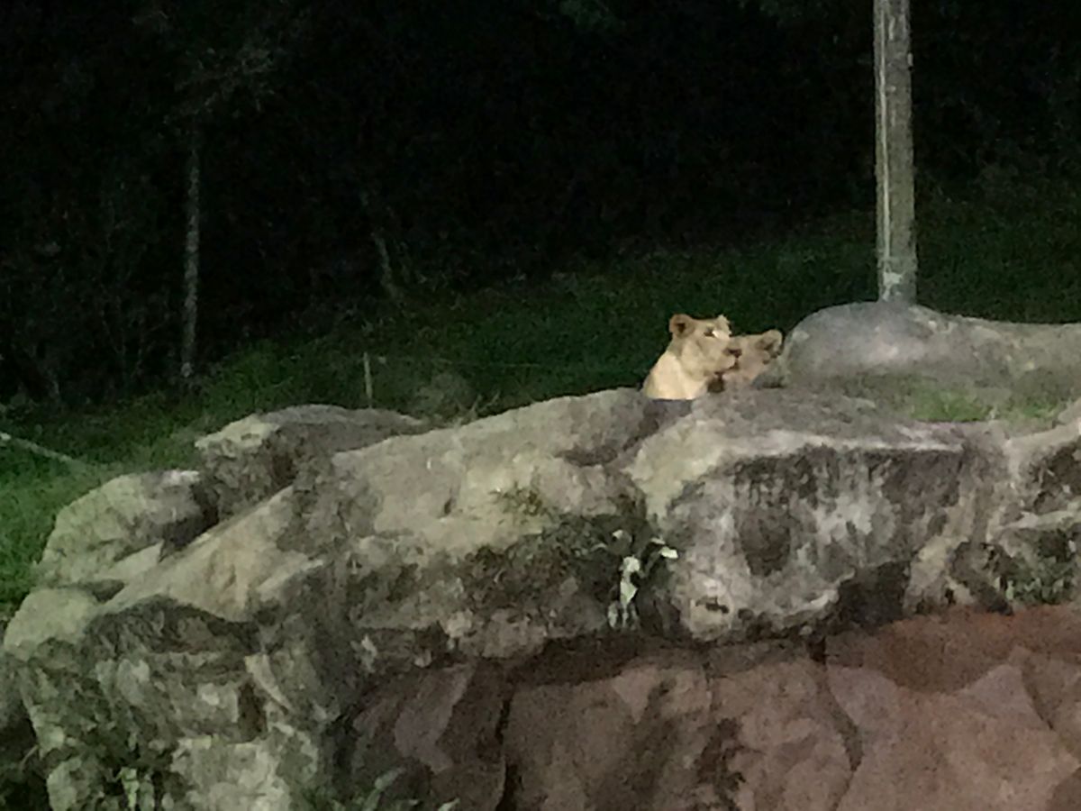 暗くてはっきりとは見えないけど、柵無しで動物達を近くで見れて良かったです。サイの迫力よかった。