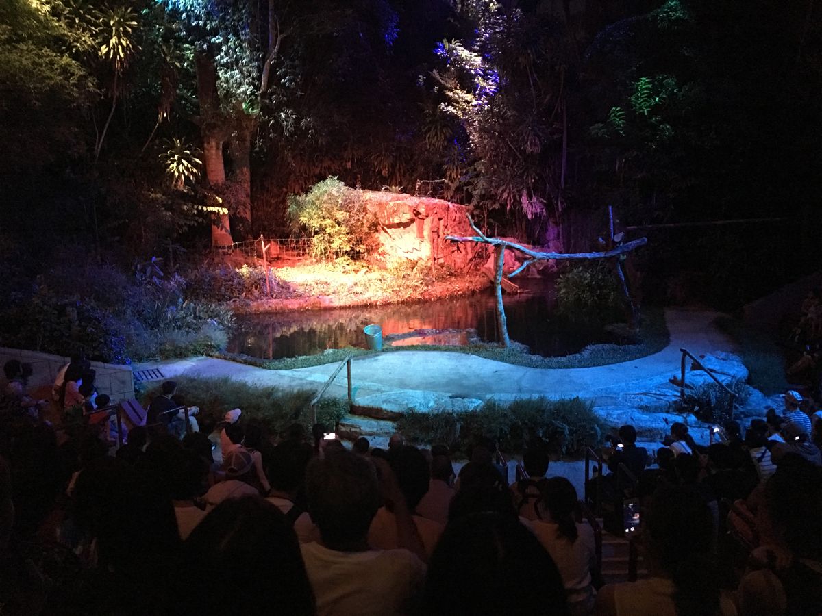 トラム乗車とアニマルショーの予約ができる点に惹かれて夕食なしの送迎付きプランに申し込みました。夕食なしのプランだったため到着後90分程自由時間があり、夕食やお土産を見る時間も取れましたが、夕食付きのプランの方はかなり忙しそうでした。トラム乗車?のすごい列を横目に並ばずにトラムに乗ることができた点は子連れには有り難かったです。夜の動物園を乗り物に乗ってまわる特別感や夕闇の中で見た象の親子の水浴びなど5歳の娘にはとても印象的な体験だったようです。初めての訪問で子供もいたためトラムとショーだけでコンパクトにまわれてよかったと思いますが、歩いて園内の動物を見る時間はないので、じっくり歩いたり写真をとったり隅々まで見学したい方は送迎なしで自分でみる時間をとらないと物足りないかもしれません。マイナス点はクラークキーのホテルに宿泊だったため集合場所まで行くのにタクシーを使わなくてはならず、帰りも解散場所からホテルまで戻るのに時間がかかり不便でした。