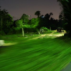 感覚的には富士サファリパークのナイトサファリをトラムで回っていく感覚でしたが、暗いのと安全のために溝をあけてたりしてるのでちょっと遠く、動物を探すのが結構必死だったと思います。