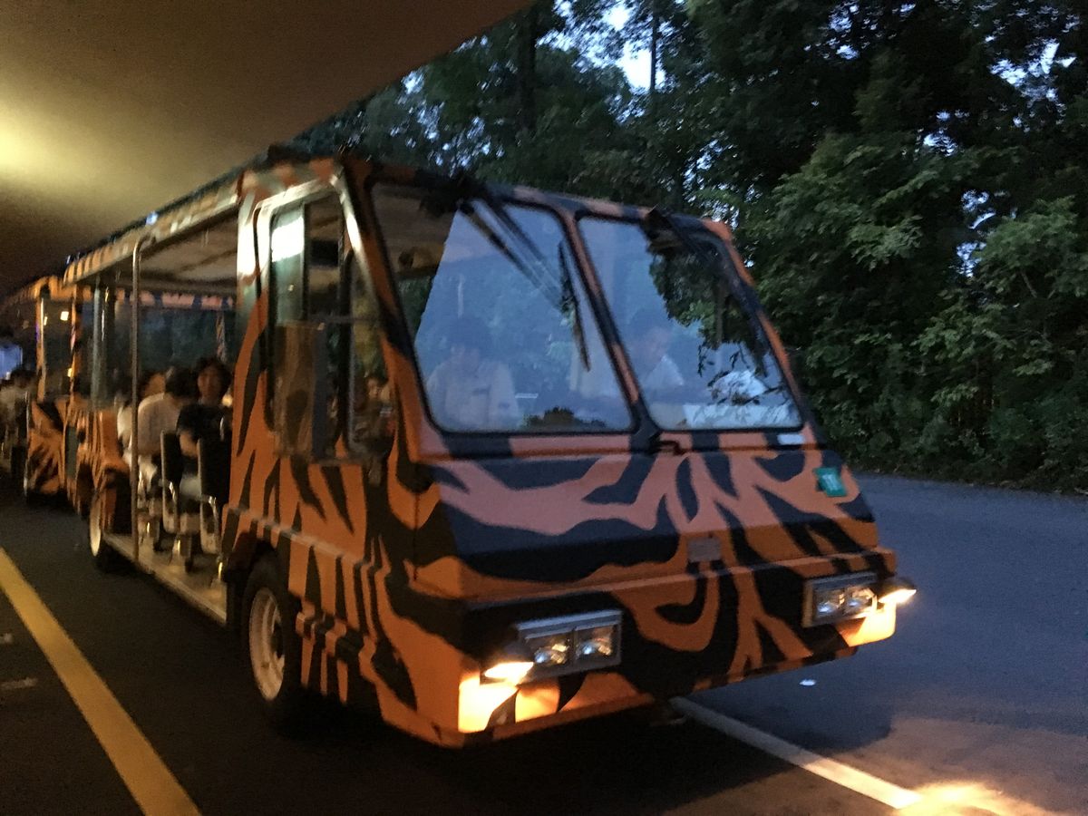 蒸し暑い中長時間並ぶ方々を横目にトラムへ優先乗車。日本語ガイドさんの説明を聞きながら進みます。柵や照明がないので、動物園というよりも私たちが自然の中にお邪魔させてもらっているような感覚。とてもアドレナリンが出ました。薄暗いので見えにくかったり、写真に写せなかったり(フラッシュ厳禁)しますが、とても素敵な時間でした。