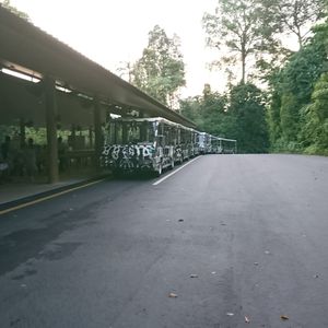 食後はトラムに乗って動物見学だ!と思ったところ、にわかに雲行きが怪しくなり土砂降りの雨になりました。スコールだからすぐ止むと思ったら一向に止まず、トラム乗車中はほぼ雨でした。トラムに付いている雨よけのビニール越しでは、外が良く見えずに散々の見学でした。