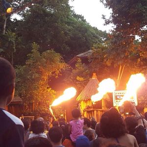 初めて行きましたが、餌を撒いてあった動物は動いていましたが、特に昼と違ってい獰猛な感じもなく、当然寝ている動物も結構致した。暗いため、あまり、よく見えない。歩いて回る所はまた違ったのかもしれない。写真は専用のカメラでないととれない。携帯ではぶれてしまって無理。最前列で見る場所も良かったせいもあるが、娘は火のショーが一番よかったと言っていた。