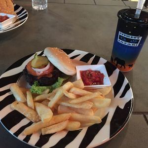 夕食は園内に入ってすぐあるボンゴ・バーガーで食べました。再集合の時間までけっこうゆっくりできます。