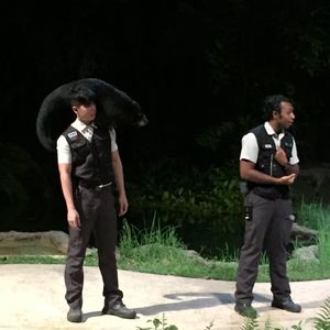 MBSの自由行動が終わると別のガイドさんが迎えに来てくれて動物園に向かった(参加者は我々だけであった)。動物園は普通の動物園でした。放し飼いを売りにしているので、動物との距離感は近かった。時々、爬虫類やクジャクのような動物が道を歩いているのは一興であった。ナイトサファリがあれば動物園は不要だと(後から)感じたが、プランを立てる人の工夫の余地も感じた。動物園では、時間の半分だけガイドさんが説明してくれ、半分は自由行動であった。自由行動の前にガイドさんから何を見るべきか(白クマの餌やり、アザラシのショー、etc)の説明があったので、割と上手に時間を使えた。
