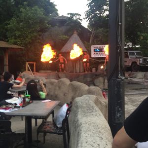 ナイトサファリは、10回くらい行っているのですが毎回ビュッフェレストラン利用でしたのでボンゴバーガーでファイヤーダンスショウを見ながら食事をしたかったのでこちらにしました。開園前に到着するので、ショウが見やすい一番前の座席をとることができました。結構ステージから近いので熱いです。トラムもほとんど並ばずに乗れました。アニマルショウもあらかじめ座席がとってあるので楽です。アニマルショウの後、ゆっくりと歩いて回れるトレイルを散策できました。帰りのタクシーはほとんど混んでおらず、ファラーパーク近くのホテルでしたが20ドルくらいでした。