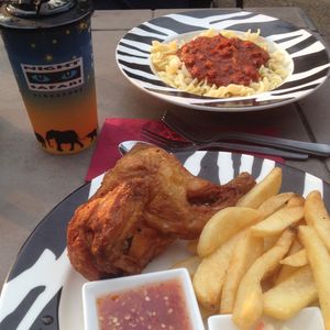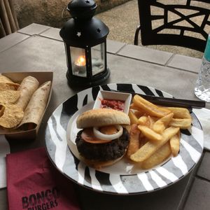ファイアーショーの隣にあるバーガー屋さんで夕食をとってファイアーショーの時間になるまで腹ごしらえ。。