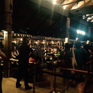 食事の人は、5時過ぎから18:45までに済ませることになります。食気無しの人は、早めにファイヤショウのテーブルについて、ビールやつまみ 軽食をオーダーして、そのまま食べながらショウを見られます。