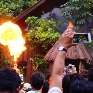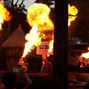 到着してからは約1時間の中で夕食を食べ、ファイアーショーを見て過ごし、