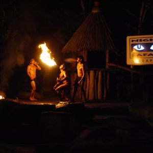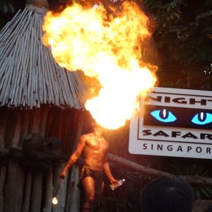 ナイトサファリをまわる前にファイヤーショーがあり、原住民風の格好をしたマッチョなお兄さん方4人が炎を吹いたり回したり飲み込んだりの白熱のショーを見せてくれます。観客が参加する場面もありましたので、熱いのが得意な方は参加してみてはいかがでしょうか。