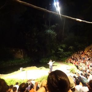 夕食ありのグループと一緒のバスで到着するので開園まで若干待ちました。開園後すぐに食事を済ませ、近くで行われるファイヤーダンスショーを見ているとトラムの時間になります。どちらかというとその後のアニマルショーがよかったと思います。大変混んでいますので、予約は必須かと思います。