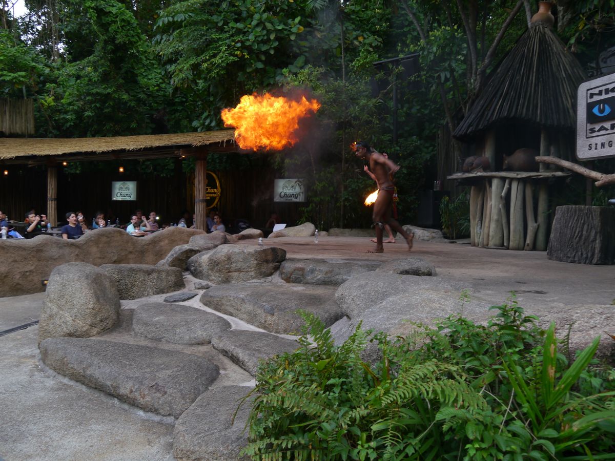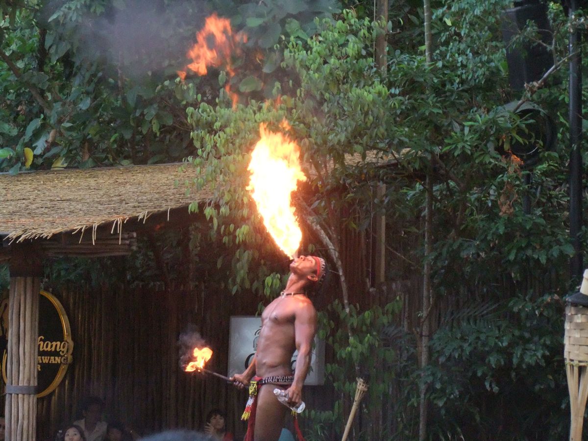 火を吹くショーは数人ではなく、一人だけの演出でした。ショーの時間もとても短いです。