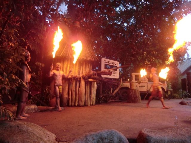 日本語トラムの時間まで、食事なしなので自由時間です。売店、ウルウルの屋台を見てからボンゴバーガーに戻ってきて、トライバルショーのステージ近くのテーブルで食事開始。ショーは18時45分から15分ですが、ものすごい人だったので、ステージ近くのテーブルに座れてよかったです。