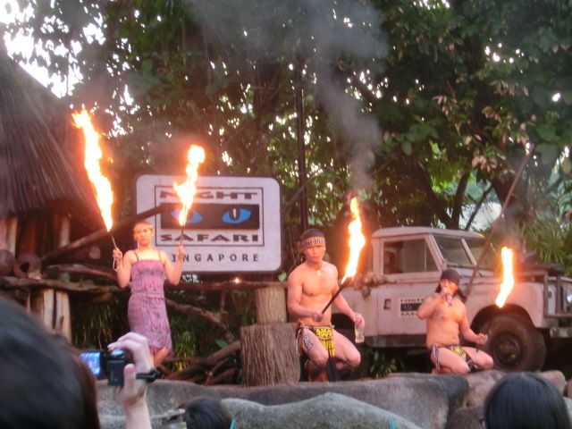 夕食なしで参加しましたが、お土産を見たり、ファイヤーダンスショーを見たりして時間はつぶせます。ナイトサファリは日本語ガイドのトラムに乗りましたが、ツアーで予約したおかげで、まったく並ばずに乗ることができました。夜の動物園ということで、普段と違った雰囲気でとても楽しめました。