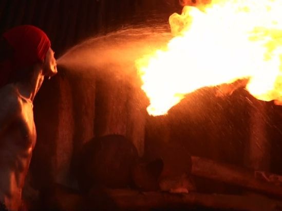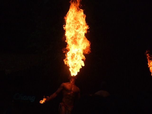 画像は、ファイヤーダンス中の劇的な瞬間です(笑)