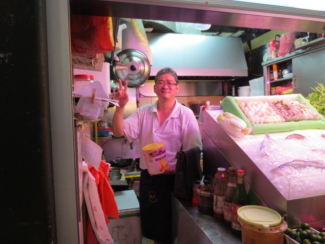 また、紹介して頂いたニュートンフードセンターの19番のお店の料理は絶品でした。最初は、不安でしたが行って良かったです。また、シンガポールに行った時は必ず行きます。屋台のコースで(SD$55)でした。写真は店主のベンさんです。チリクラブやチャーハンは絶品です。全部美味しかったです。