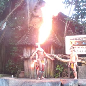 食事は園内でチリクラブ味のミーゴレンを頂きました。噂通り美味しくて見事完食。ペットボトルのソフトドリンクは一律4ドル。高いなと思ったけどコンビニでコーラが2ドル30セントだったのでまだ良心的な金額です。食後は最前列でファイヤーショーを観戦。立ち見で20分程待ちましたが迫力があって楽しいです。特に出演男性の体格が素晴らしい!! ショー自体は動物とは無関係です。